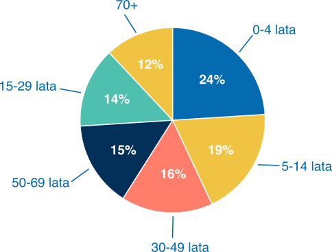 Dzieci w wieku 5–14 lat stanowią 19% ofiar.